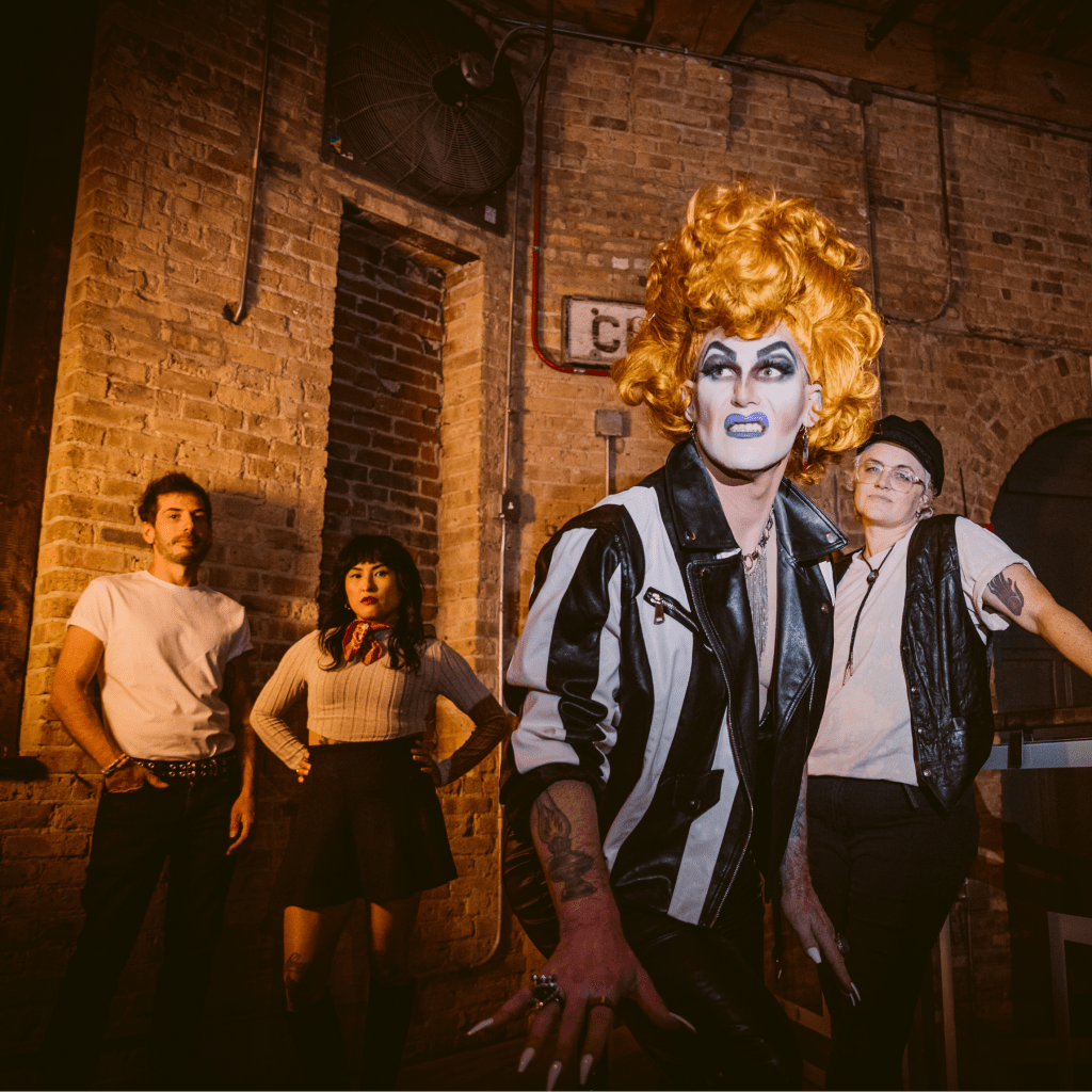 Wearing tall hair and heels, the charismatic seven-foot drag queen Beverly Rage leads the band Bev Rage & the Drinks in a dynamic, visually exhilarating, anarchic garage punk spectacle. Bev Rage & the Drinks’ unique style, which earned them the title of Chicago’s Best Punk Band in 2024, is relentlessly loud, fast, and brash, showcasing a trove of hooks that invite audiences to bop along.