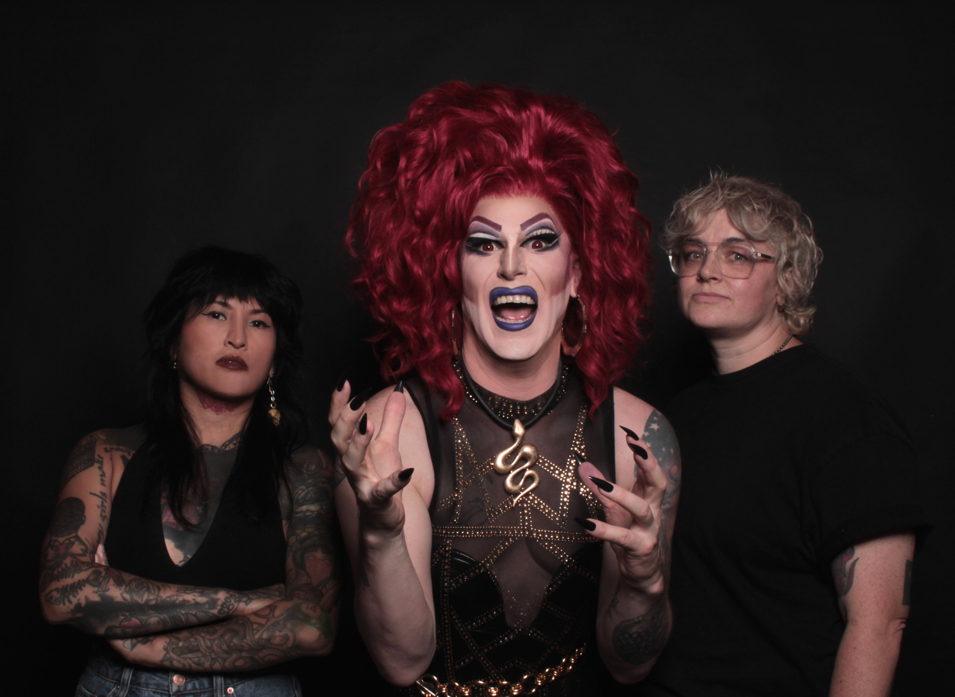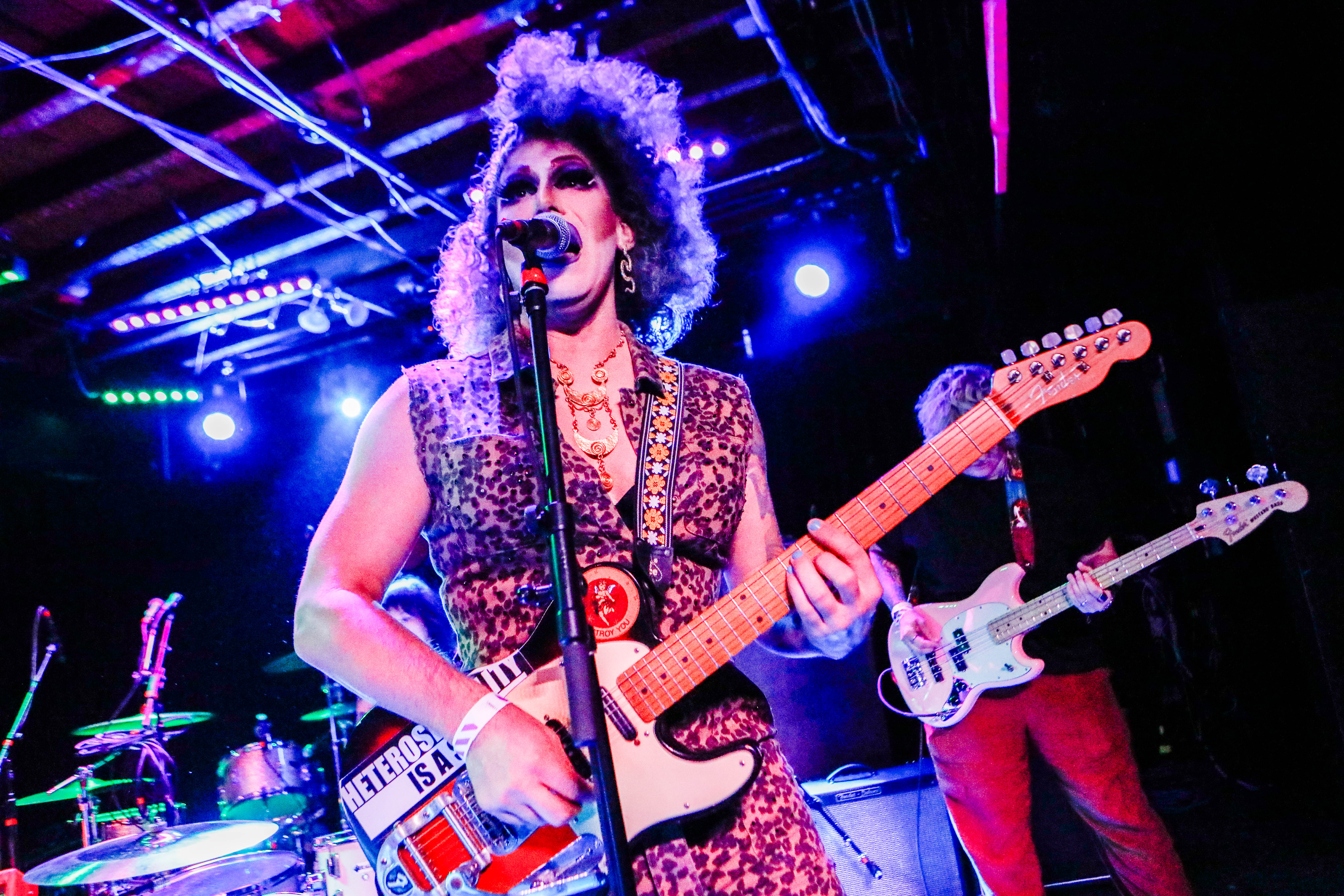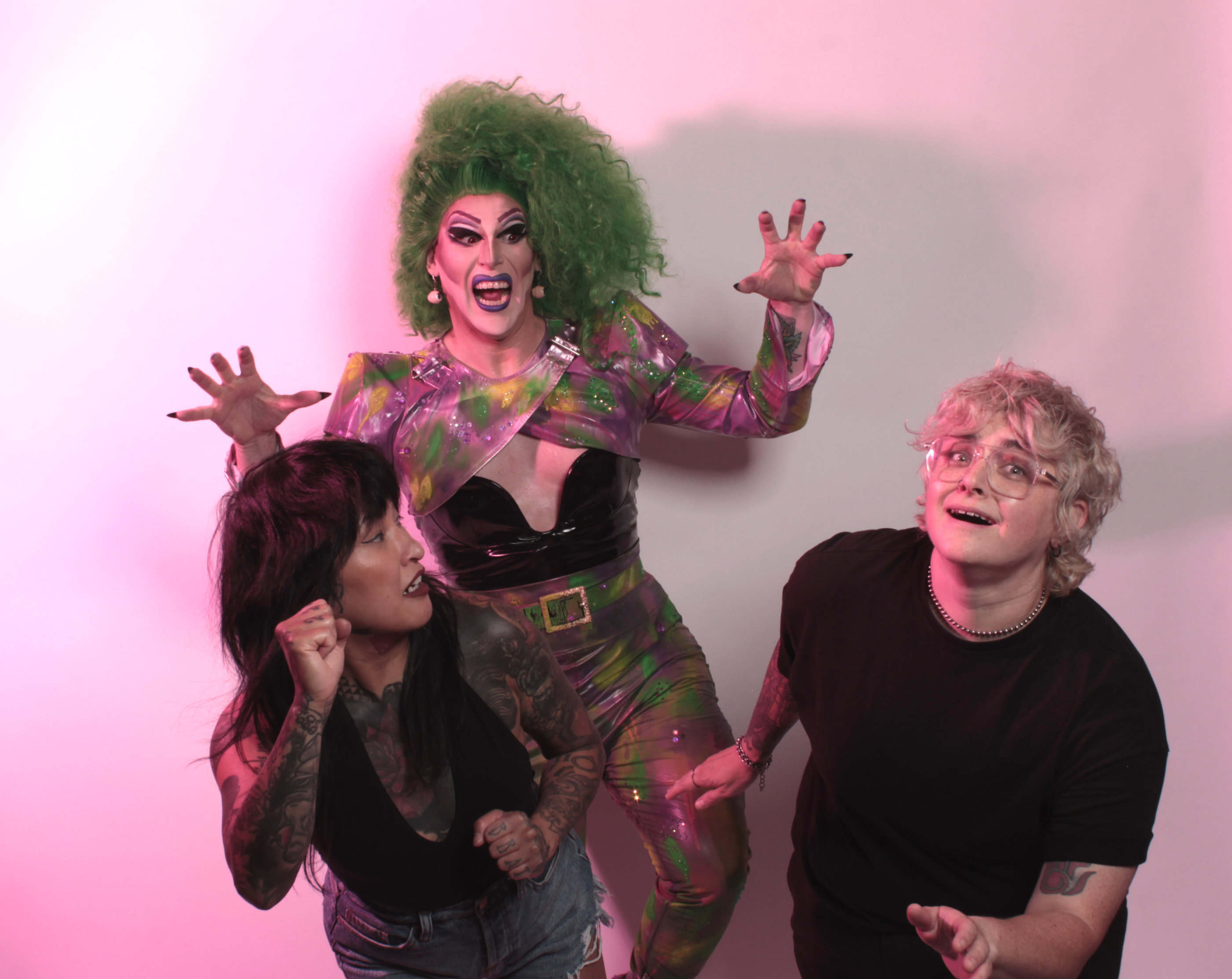 Wearing tall hair and heels, the charismatic seven-foot drag queen Beverly Rage leads the band Bev Rage & the Drinks in a dynamic, visually exhilarating, anarchic garage punk spectacle. Bev Rage & the Drinks’ unique style, which earned them the title of Chicago’s Best Punk Band in 2024, is relentlessly loud, fast, and brash, showcasing a trove of hooks that invite audiences to bop along.